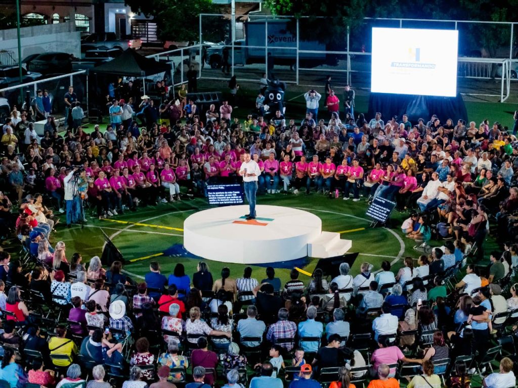 Acompañado de su esposa, la presidenta del DIF Hermosillo, Patty Ruibal Zaragoza, el alcalde sostuvo un diálogo con familias en el parque Cuatro Olivos, donde compartió los principales logros de su administración en seguridad, inversión en infraestructura y apoyo a población vulnerable.