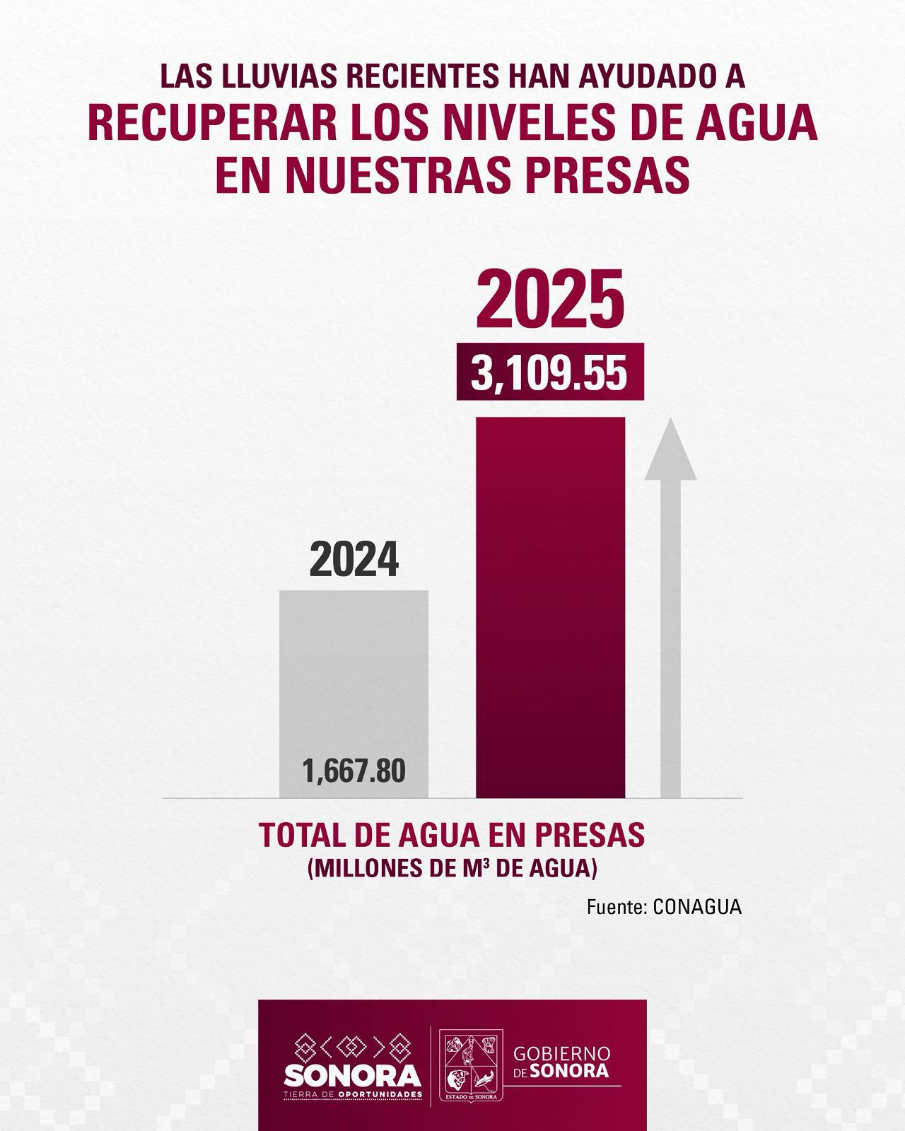 Las recientes lluvias que se han presentado en Sonora por el paso de tormentas tropicales han dejado una recuperación de los niveles de las presas en la entidad, informó el gobernador de Sonora, Alfonso Durazo Montaño, quien realizó un recorrido por las zonas afectadas desde Hermosillo hasta la región del valle de Guaymas y Empalme.