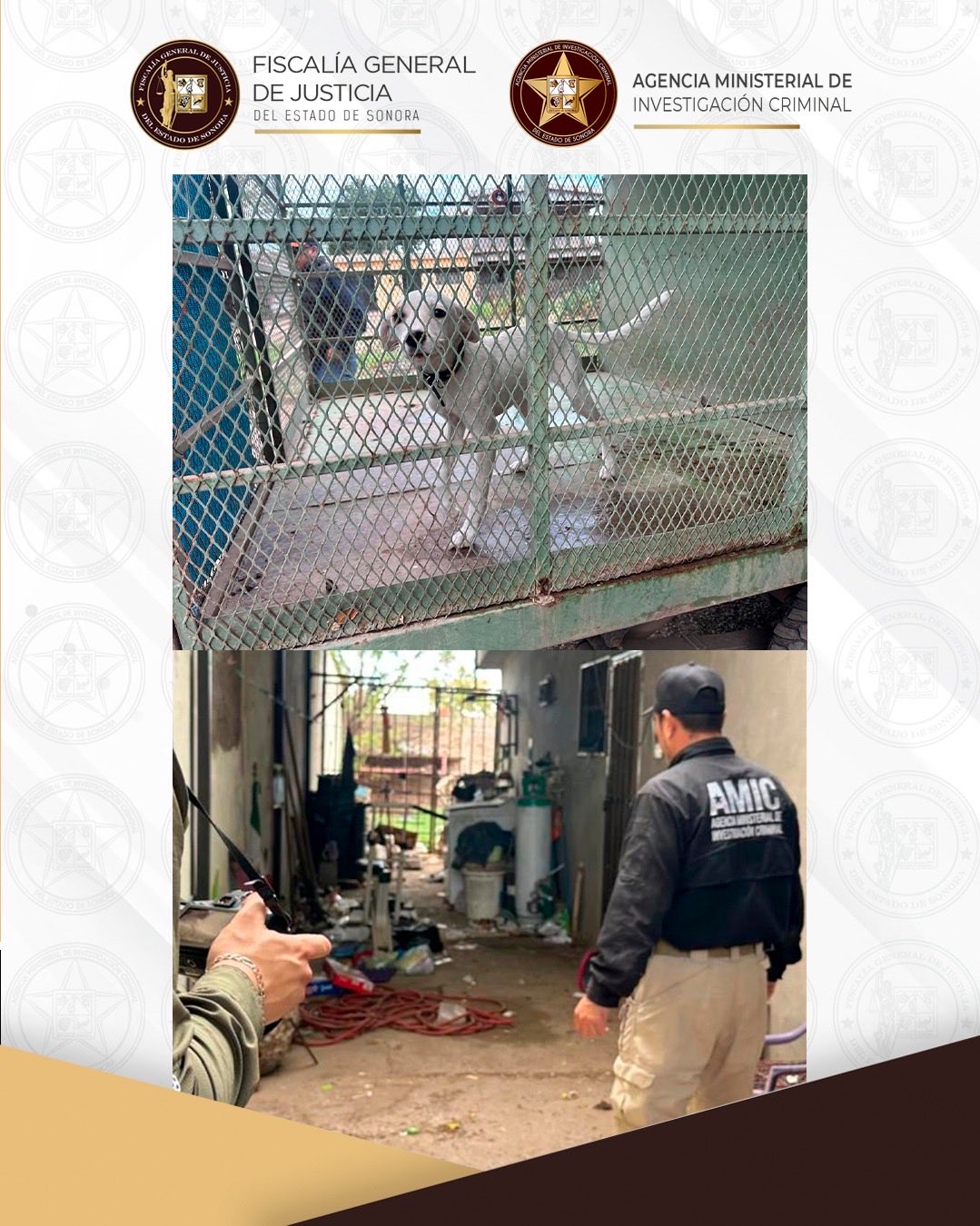 Cajeme, Sonora, 10 de febrero de 2026.- La Agencia Ministerial de Investigación Criminal (AMIC) realizó una diligencia de cateo en un domicilio ubicado en la colonia Benito Juárez, en Ciudad Obregón, por el delito contra los animales por maltrato o crueldad, en la modalidad de abandono, logrando rescatar a un cachorro canino. Durante la intervención, se aseguró un animal de compañía criollo, color blanco con mancha café en el ojo derecho, de aproximadamente cuatro meses de edad, así como diversos indicios relacionados con los hechos, quedando la investigación en contra de quien resulte responsable. Como medida de protección inmediata, el can fue trasladado al Centro de Control Animal del Ayuntamiento de Cajeme, donde recibió atención médica y valoración veterinaria, conforme a los protocolos de bienestar animal. Entre los indicios asegurados se encuentran el canino, una cuerda y documentación, los cuales quedaron a disposición de la autoridad ministerial para la integración de la carpeta de investigación.