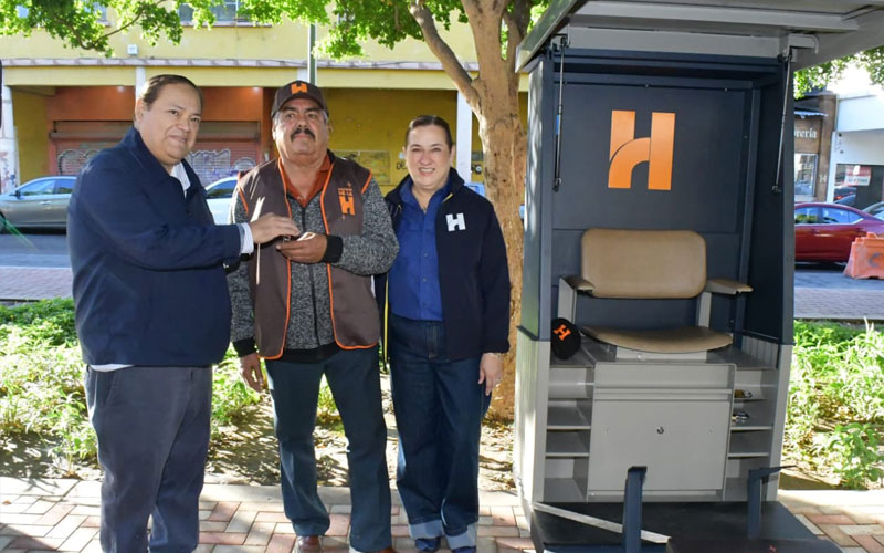 Quienes viven del oficio de aseo de zapatos en el bulevar Hidalgo y Mercado Municipal, recibieron de parte del presidente municipal Antonio Astiazarán una estación de trabajo digna y funcional, así como equipamiento que los distingue como Boleros de la H.