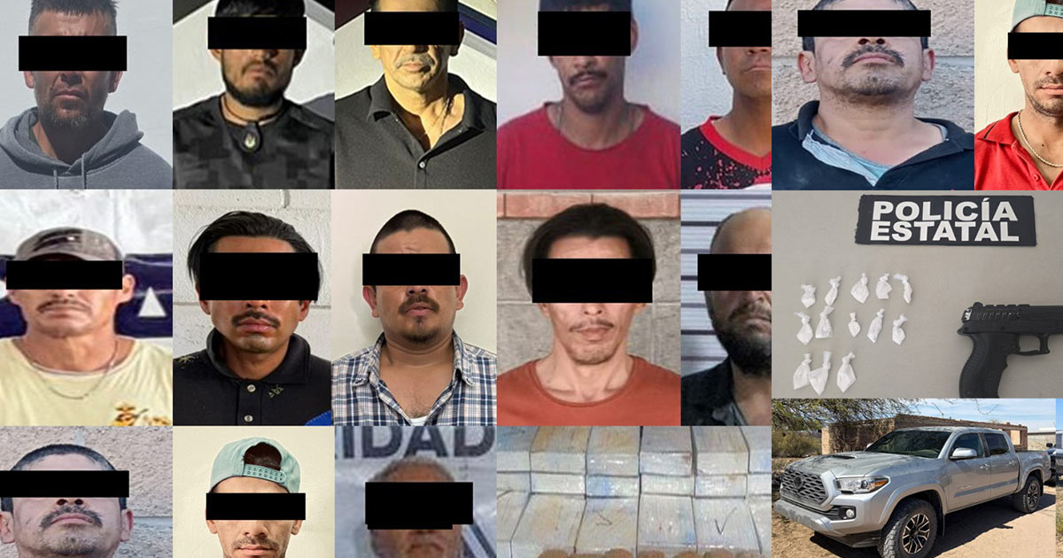 La Policía Estatal de Seguridad Pública (PESP) informó la detención de 20 personas en flagrancia y el aseguramiento de más de 522 mil dosis de narcótico durante una jornada de operativos realizada el 2 de marzo en distintos municipios de Sonora.
