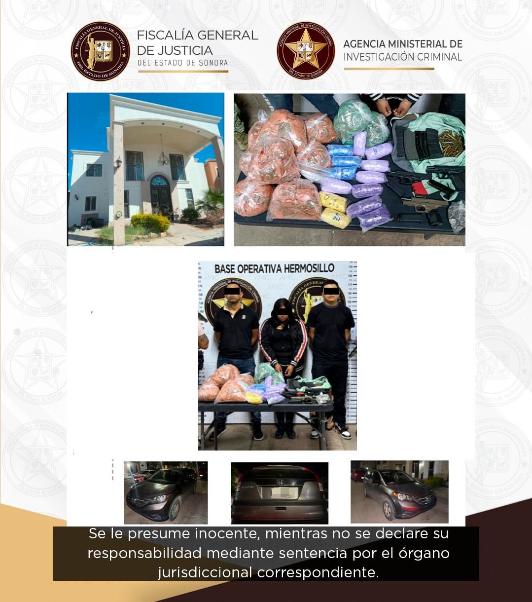 Hermosillo, Sonora, 15 de marzo de 2026.- A través de un minucioso trabajo de inteligencia y vigilancia táctica, la Fiscalía General de Justicia del Estado de Sonora (FGJES) por medio de la Agencia Ministerial de Investigación Criminal (AMIC), desarticuló una célula de abastecimiento y distribución para puntos de venta de droga en la capital del estado, lo que permitió sacar de circulación miles de dosis de narcótico y desarmar a un grupo delictivo tras una serie de acciones operativas.