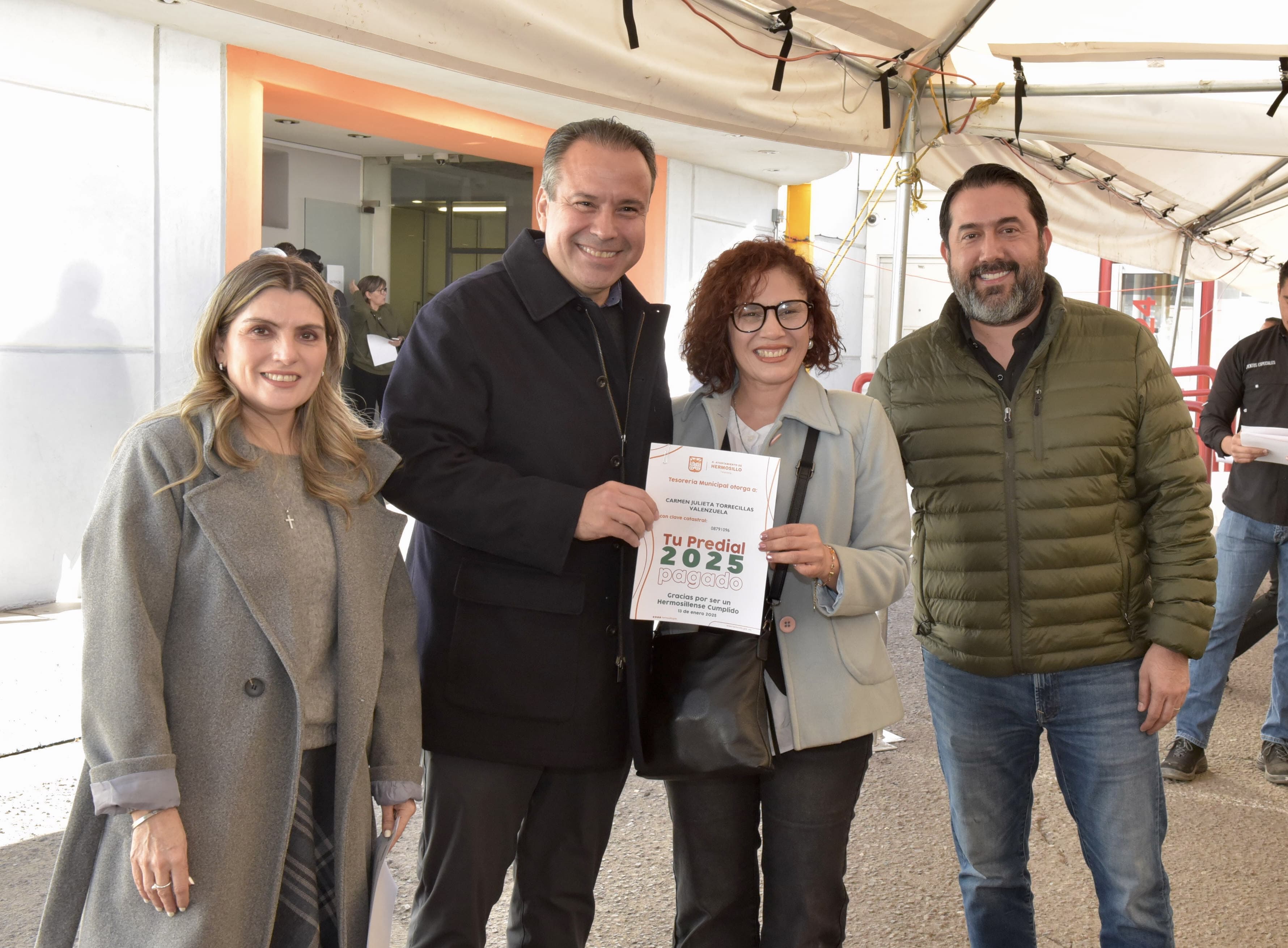 El presidente municipal, Antonio Astiazarán Gutiérrez, entregó certificados del Programa "Tu Predial 2025 Pagado" a un grupo de contribuyentes de los 159 beneficiados de una bolsa de 300 mil pesos del programa de Tesorería Municipal dirigido a ciudadanos cumplidos que se registraron en el mes de diciembre.