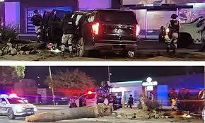 Con severos daños resultó un vehículo tipo camioneta que se impactó contra una enorme palmera la cual derribó sobre el bulevar Rodríguez, lo que generó gran movilización de elementos policiacos y de la Guardia Nacional, ya que al parecer fue abandonada por los tripulantes tras una persecución.
