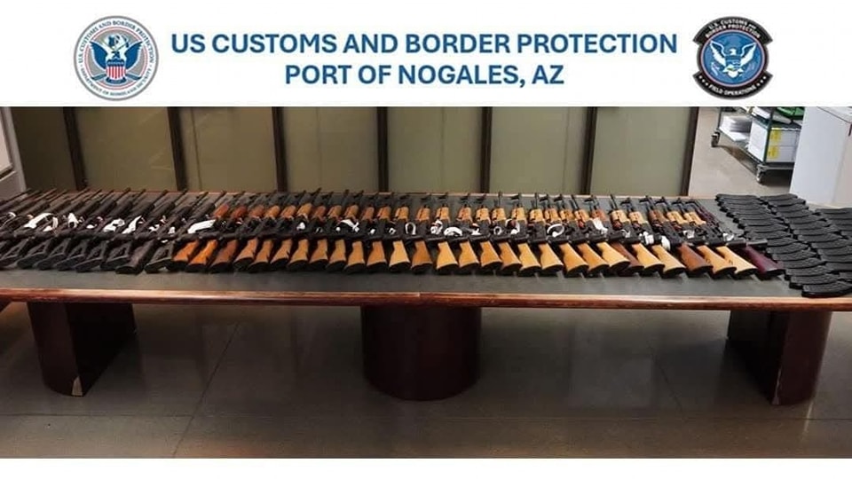 A través de una publicación en la red social X, el director de la Oficina de Aduanas y Protección Fronteriza (CBP, por sus siglas en inglés), Michael W. Humphries, informó que personal bajo su mando decomisó un arsenal de armas de alto poder durante revisiones en los carriles de salida en una de las garitas de Nogales, Arizona, hacia México.