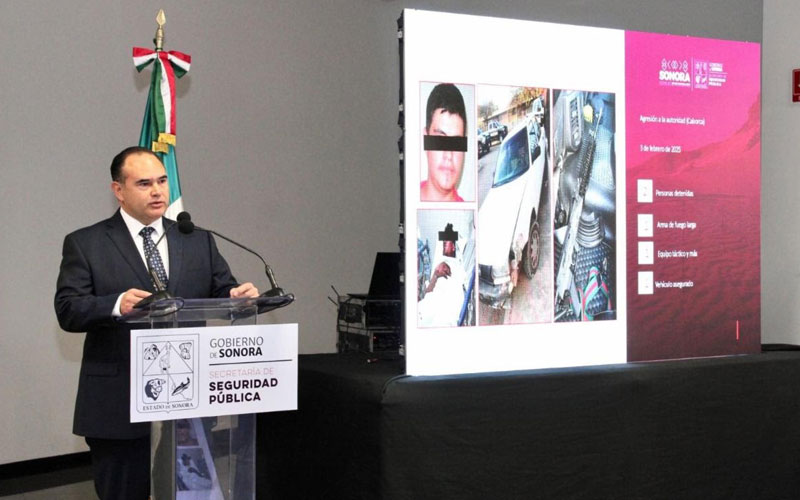 En conferencia de prensa, Víctor Hugo Enríquez García, secretario de la SSP detalló los resultados obtenidos durante el periodo del 17 de enero al 4 de marzo de este año, con los grupos especializados de la Policía Estatal de Seguridad Pública (PESP), en coordinación con autoridades de seguridad en la región de Caborca, Pitiquito y Santa Ana.
