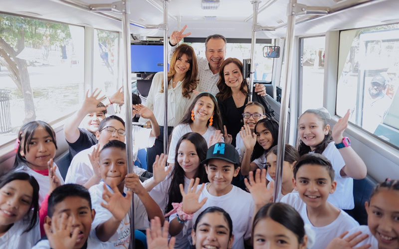 Como parte de las actividades niñas, niños se trasladaron en el transporte eléctrico HBus al Parque Madero donde autoridades municipales ofrecieron su respaldo para continuar desarrollándose y cumplir sus sueños.