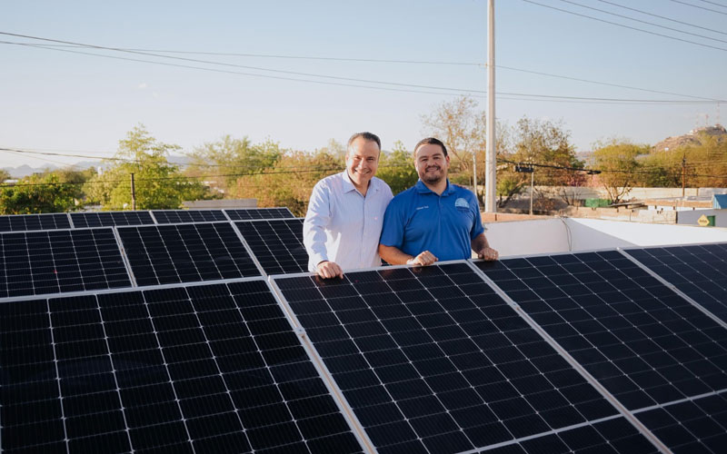 El presidente municipal, Antonio Astiazarán Gutiérrez acompañado de su esposa, Patricia Ruibal Zaragoza, presidenta de DIF Hermosillo, colocaron la placa a la asociación CIDA Palo Verde como parte de las beneficiadas con el programa Peso Solar que dota de paneles solares a instituciones de beneficencia, la cual, ahorra 83 por ciento en el pago de luz.