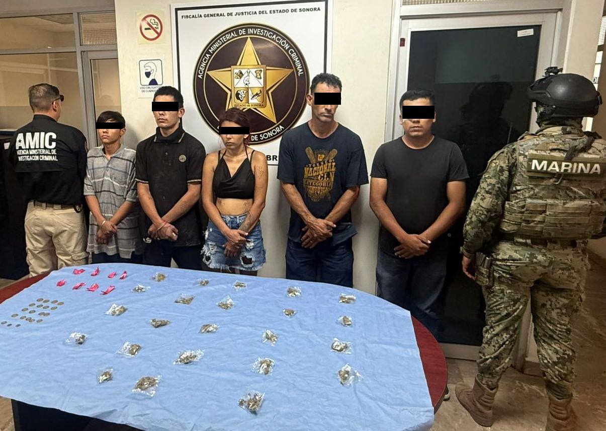 Además de este objetivo criminal, los detenidos fueron Azael “N”, de 26 años; Cristian “N”, de 39 años; José Manuel “N”, de 19 años y Evelyn Guadalupe “N”, de 24 años, estos dos últimos señalados como narcomenudistas.