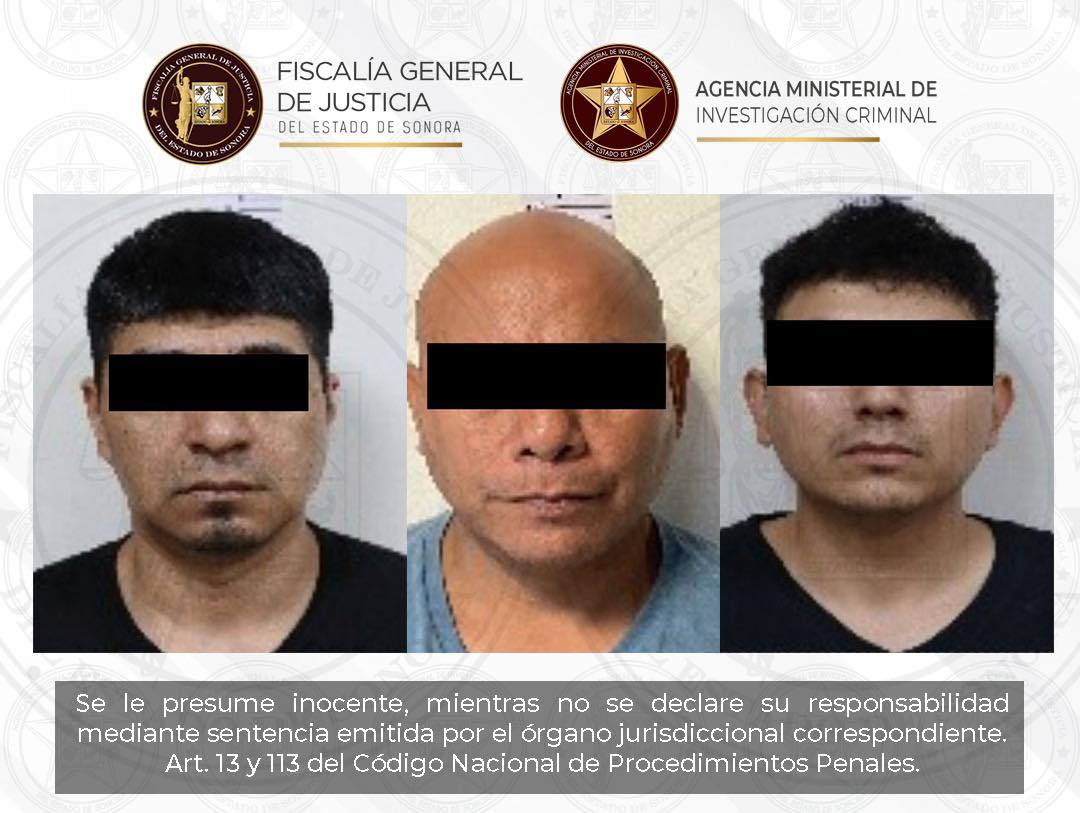 Los sujetos imputados son Juan Armando “N”, de 47 años, Alan “N”, de 27 años, y Abundio “N”, de 38 años; las órdenes de aprehensión se derivan de los hechos ocurridos el 8 de mayo de 2025, cuando las víctimas, Manuel “N”, Eruviel Emanuel “N” y Leonardo “N”, transitaban a bordo de un vehículo por la colonia Primero de Mayo de Ciudad Obregón; en ese momento, los hoy imputados, desde de otro vehículo, se emparejaron y realizaron múltiples disparos con arma de fuego en contra de las víctimas, quienes perdieron la vida en el lugar.