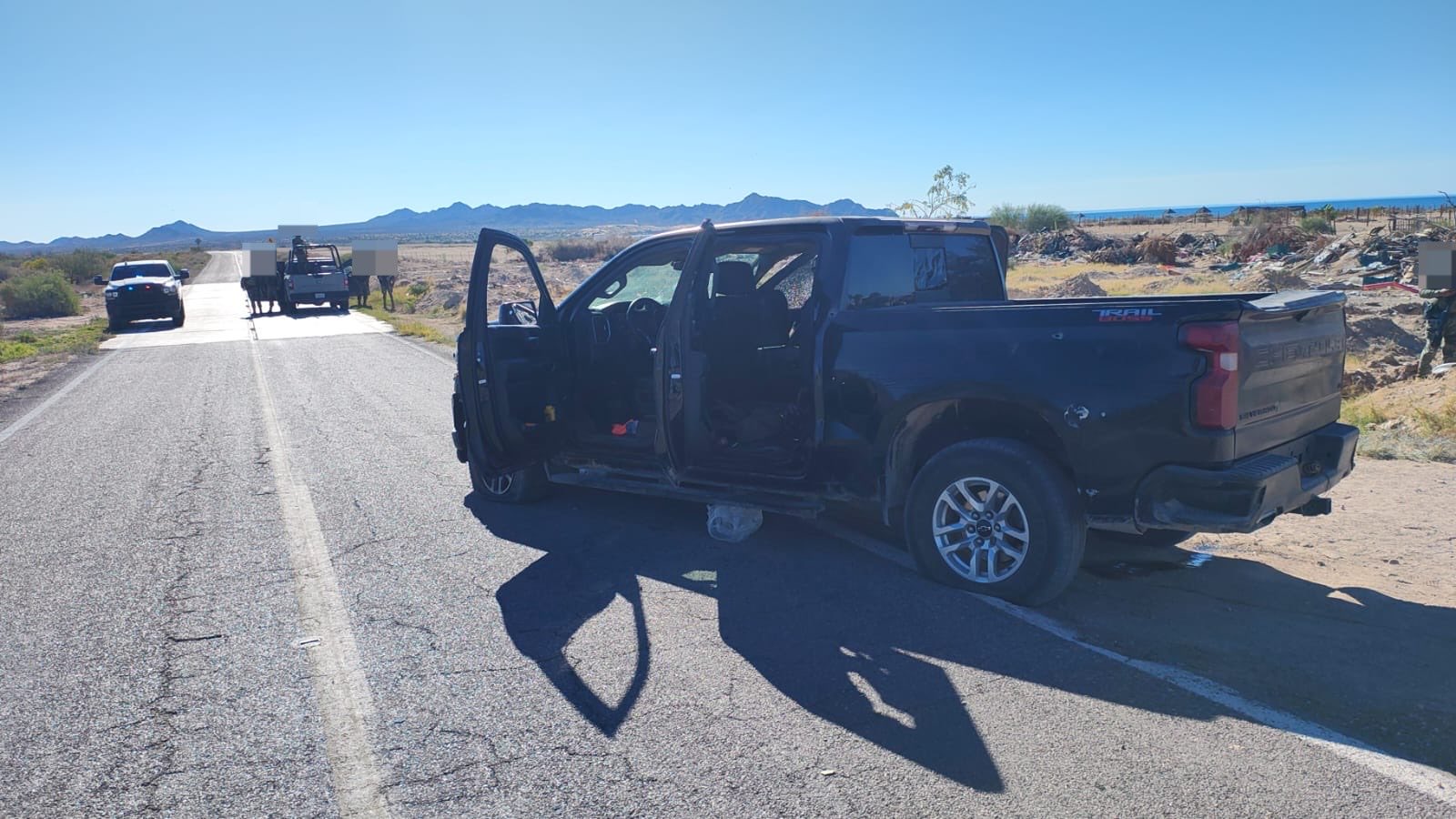 Pitiquito, Sonora; 4 de noviembre de 2025.- Durante un operativo conjunto entre elementos de la Secretaría de Marina Armada de México (SEMAR) y la Agencia Ministerial de Investigación Criminal (AMIC) repelieron una agresión armada perpetrada por tres sujetos que transitaban en un vehículo con reporte de robo sobre la carretera estatal a Puerto Libertad.