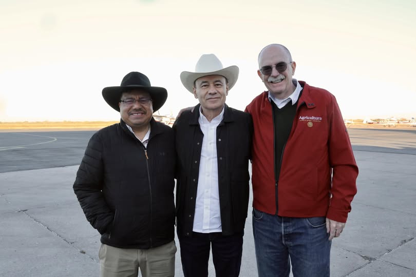 recibió en el Aeropuerto de Ciudad Obregón al titular de , Julio Berdegué (), y a Adelfo Regino Montes (), director del . En estos momentos, el gobernador y los funcionarios del se encuentran en el pueblo de Vícam, reunidos con comunidades yaquis.