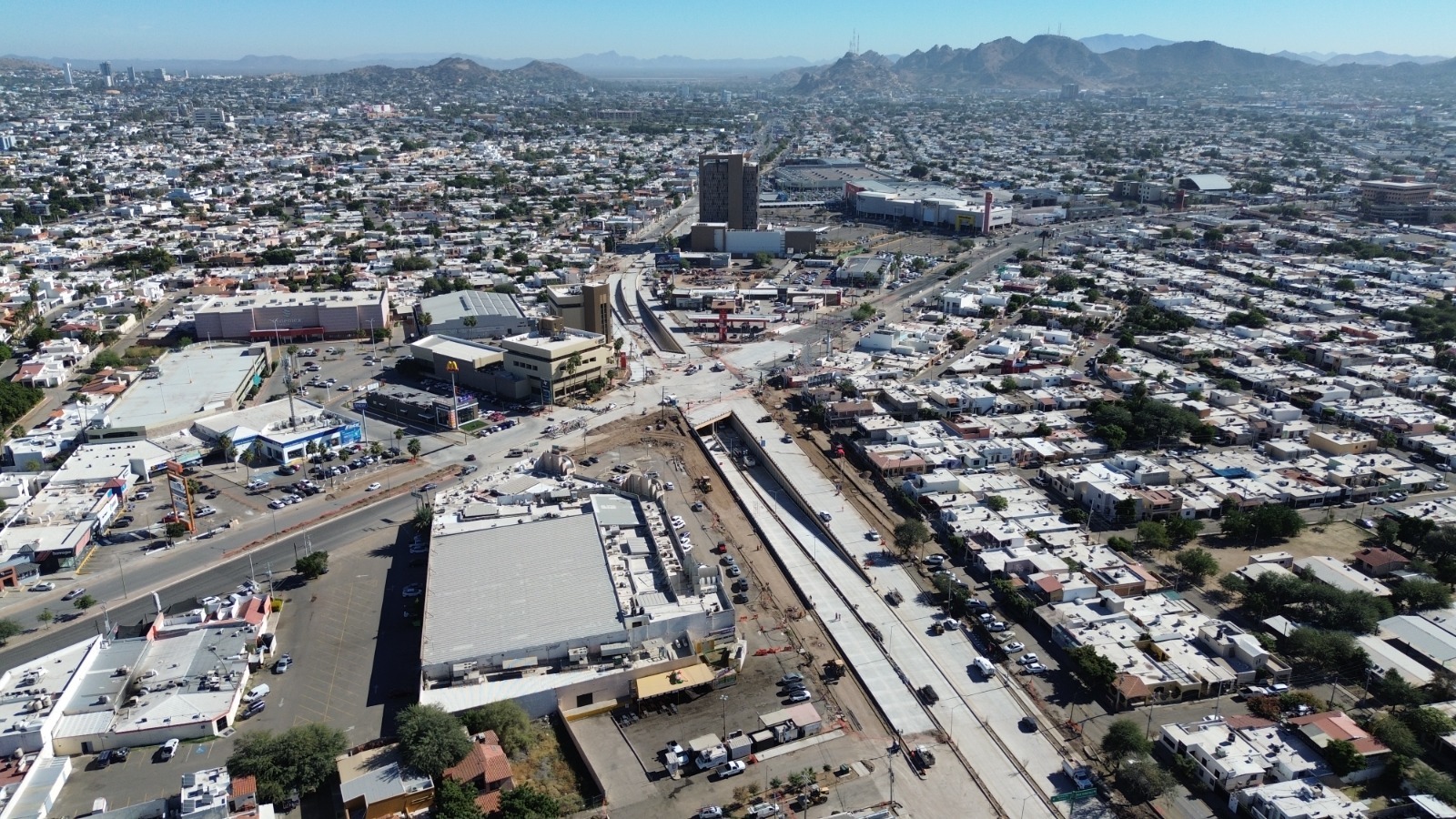 Entre las obras está la construcción del paso a desnivel Colosio y Solidaridad, obra ejecutada con recursos 100% municipales para mejorar la seguridad vial y el flujo de más de 74 mil vehículos diarios, incorporando ciclovías y reforestación con especies nativas, marcando un precedente histórico en Hermosillo.