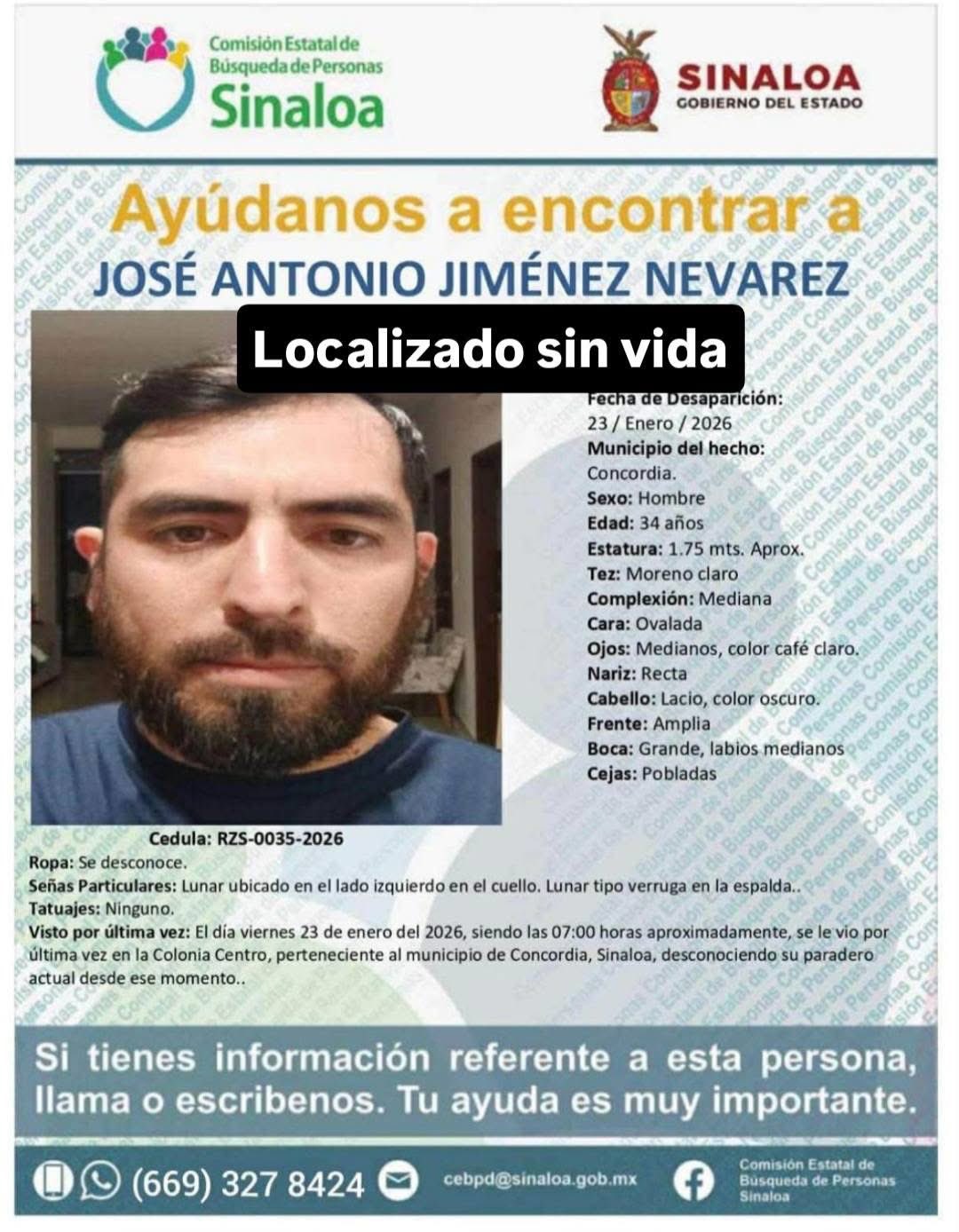 Confirman que uno de los cinco mineros localizados sin vida en una fosa clandestina de Sinaloa, es el sonorense José Antonio Jiménez Nevárez. Todos eran trabajadores de la mina Vizsla Silver, desaparecidos desde el 23 de enero 2026.