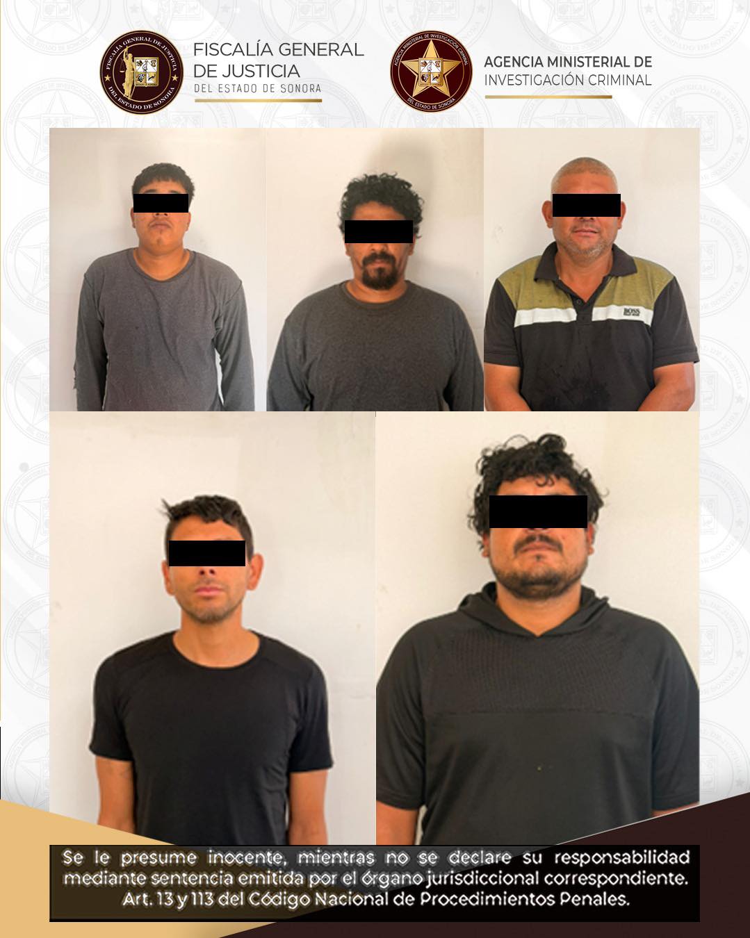 Magdalena de Kino, Sonora, 11 de febrero de 2026.- Óscar “N”, Ramón Isidro “N”, Brayan Tadeo “N”, Julio Alberto “N” y Francisco Rafael “N”, fueron vinculados a proceso por un Juez, por su probable responsabilidad en el delito de robo con violencia en las cosas, ejecutado de noche por dos o más personas, ante los datos de prueba presentados por la Fiscalía General de Justicia del Estado de Sonora (FGJES) en Magdalena de Kino, Sonora.