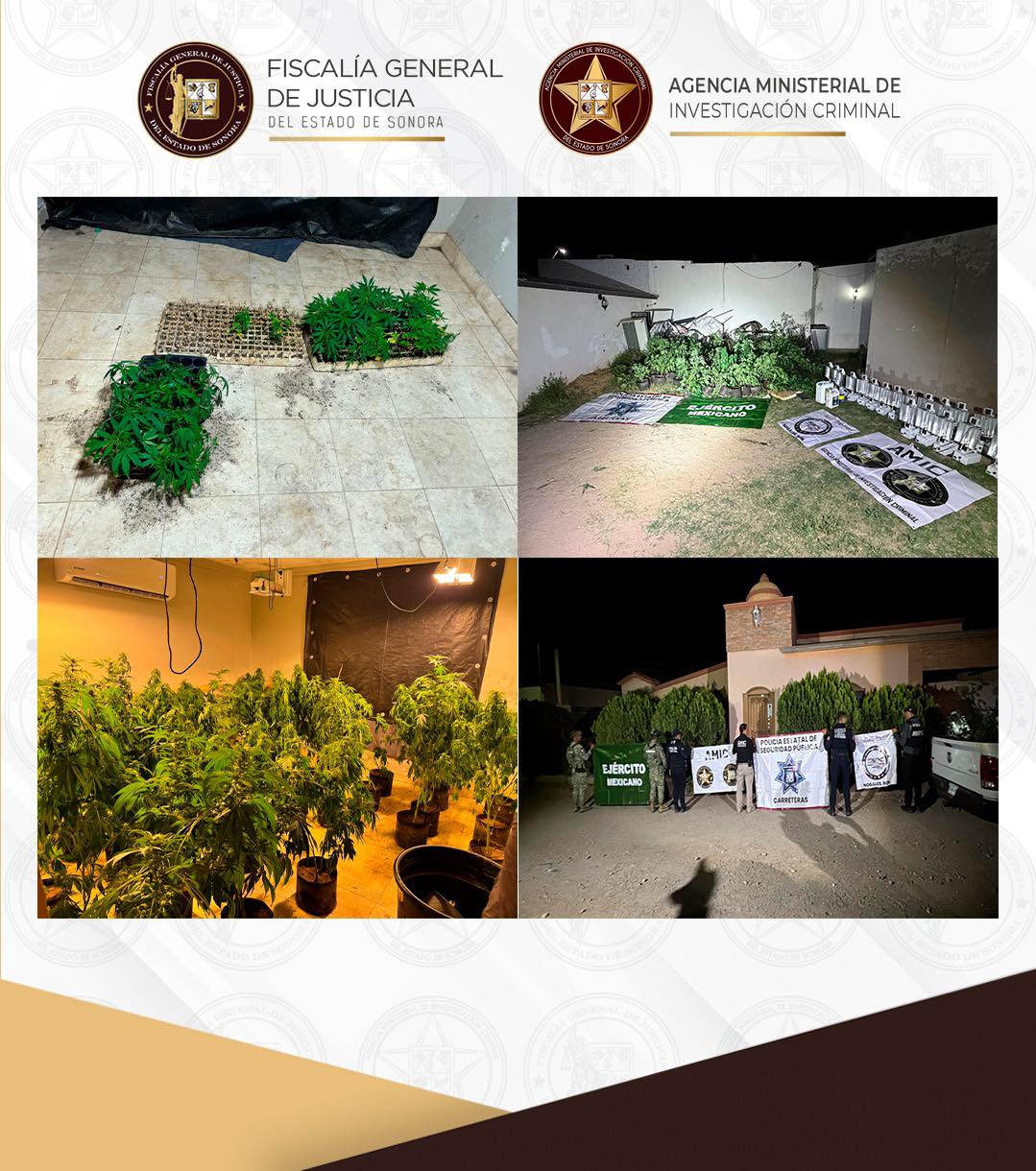 Magdalena de Kino, Sonora, 2 de abril de 2026.- La Fiscalía General de Justicia del Estado de Sonora (FGJES) ejecutó una diligencia de cateo en un inmueble habilitado como invernadero clandestino, presuntamente destinado a la producción y cultivo de marihuana, el cual contaba con infraestructura especializada para su operación, en Magdalena de Kino.