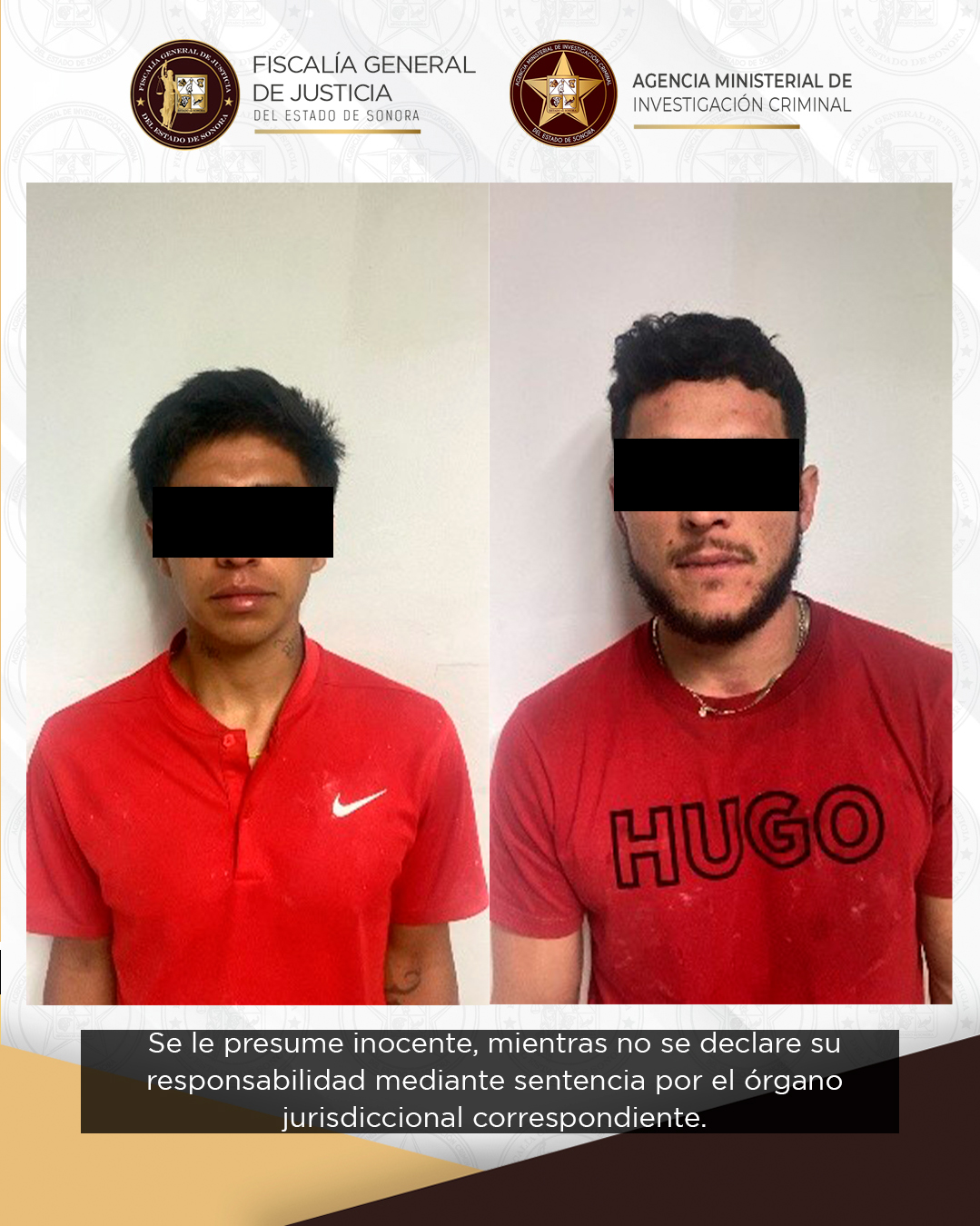 Magdalena de Kino, Sonora, 29 de abril de 2026.- La Fiscalía General de Justicia del Estado de Sonora (FGJES) informó que fueron vinculados a proceso Miguel "N" y Ángel "N" por su probable responsabilidad en los delitos de tentativa de homicidio calificado con ventaja en número de tres, contra agentes de la Policía Estatal de Seguridad Pública (PESP), narcomenudeo en su modalidad de posesión de metanfetamina y posesión de vehículo con reporte de robo, en Magdalena de Kino, Sonora.