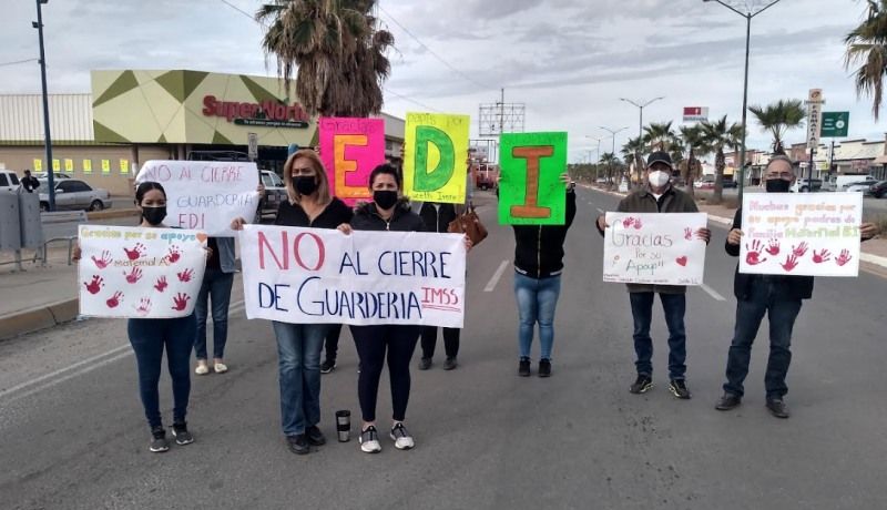 La manifestación de los padres de familia se realizó sobre el bulevar Gastón Luken y Agustín del Campo, en contra de los ajustes en los criterios del IMSS para la operación de los servicios de guardería infantil.